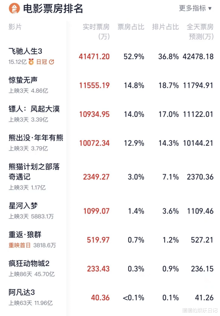 3天3个单日票房冠军,总票房已经破了15亿!